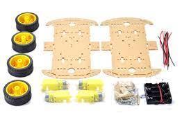 Kitcontains12voltsDCmotors,Wheels,NutsandScrews, chassis,andjumperwires.