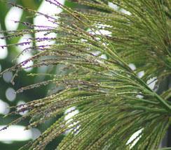 The rachis starts yellowing and drying, the female flowers and buttonsstart shedding.