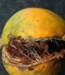 Thisdiseasecausesweightlossand occurs in fruits. The fruits start cracking leading to no yield from thediseasedseeds.Thesymptoms are early yellowing of seeds and the fruits develop a crack on the underside.Thisisafairlycommon diseaseinarecanutplants.
