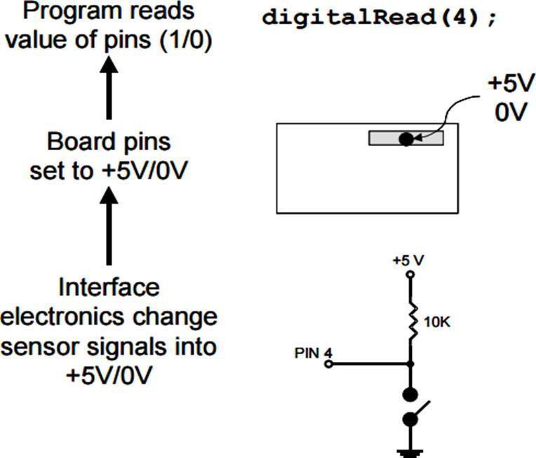 To decide the condition of switches and different sensors, the Arduino can peruse the voltage esteem applied to its pins as a twofold number. The connection point hardware makes an interpretation of the sensor signalintoa0or+5VsignappliedtothecomputerizedI/O pin. Through a program order, the Ardiomp investigates theconditionofthepin.Intheeventthatthepinisat0V, theprogramwillperuseitasa0orLOW.Intheeventthat it is at +5 V, the program will peruse it as a 1 or HIGH. In the event that in excess of +5 V is applied, you might victory your board, so watch out. The grouping of occasionstoperuseapinisdisplayedhere