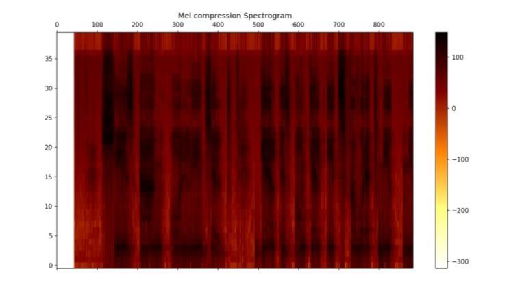 The spectra are run through the Mel filter bank, which converts the frequencies to the Mel scale. The Mel compressionspectrogramcanbebuiltinafewlinesofcode, making it a simple and effective method for representing audiosignals.It isworth noting thattheMel compression spectrogramiswidelyemployedinspeechprocessingand machine learning activities because it gives a more perceptuallyaccuraterepresentationofsound.Itcaptures thesignificantaspectsoftheaudiosignalwhileloweringthe dimensionality of the data, which can be useful for applicationslikeaudiocompressionandclassification.