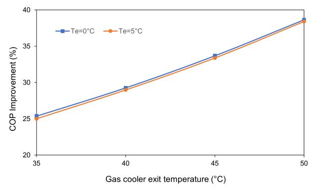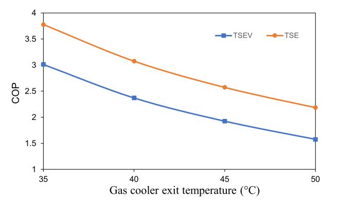 ThepercentageimprovementinCOPofTSEcycle comparedwithTSEVcycleincreaseswithriseingas coolerexitandevaporatortemperatures.