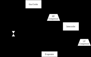 Figure -3:Schematicdiagramoftwo-stagetranscritical cyclewithexpansionvalve