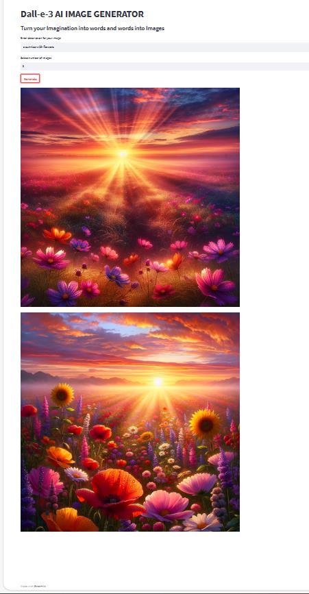 This is our final result, we have given a prompt as “sunrise with flowers” and number of images as “2” and thesearethegeneratedimages.