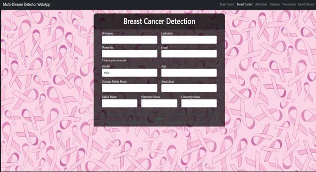 A breast cancer detection web app leverages machine learningtoassistinearlydiagnosis.Itusestrainedmodels, often involving deep learning and convolutional neural networks (CNNs), to analyze mammogram images or histopathologicaldata.Usersuploadmedicalimages,which the app processes to identify patterns indicative of cancerous cells.Thesystem providesprobabilityscores or classifications(benignormalignant),aidingradiologistsin decision-making. Incorporating features like user-friendly interfaces, secure data handling, and integration with medical databases enhances its utility. The app aims to improve diagnostic accuracy, reduce workload for healthcare professionals, and ultimately enhance patient outcomesthroughearlydetection.