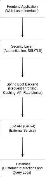 Spring Boot Backend: The core application that processes customer queries, interacts with GPT-4 via its API, and returnsresponses.
