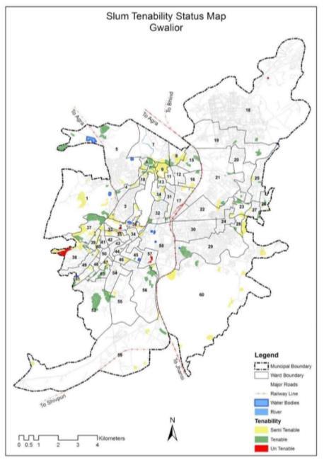 -6:MapshowingtheLocationofSlumsandtheSlum TenabilityStatusofGwalior