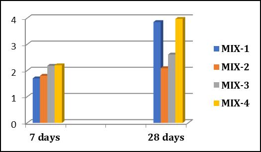 Chart-3: flexuralstrengthforconventionalconcreteafter7,and 28-daysvsbacterialconcrete.
