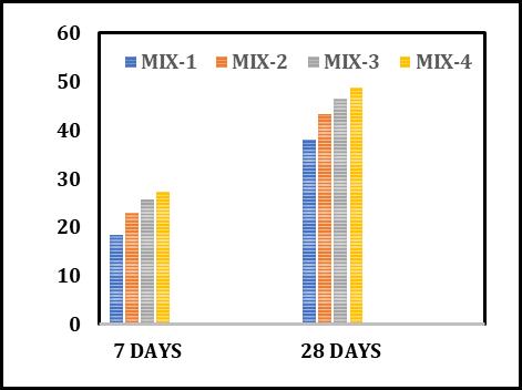 Chart-1: Compressivestrengthforconventionalconcreteafter7, and28-daysvsbacterialconcrete.