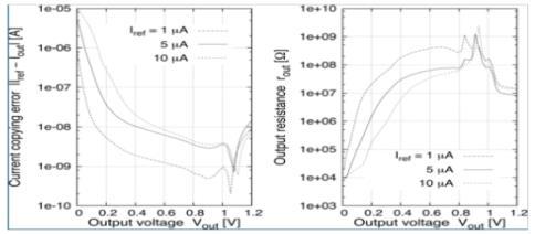 Fig.7.CurrentmirrorwiththeVeSFET-basedOTAinthe feedbackloop:(a)currentcopyingerrorand(b)output resistance.