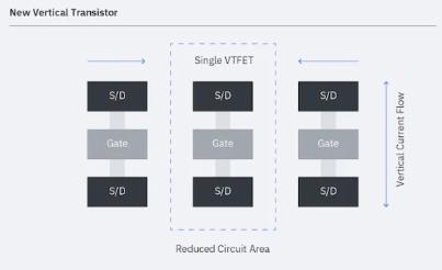 veryhighchancethattheadjacenttransistorsinterfereeach other. To prevent them from interfering, we place dummy gatesbetweenthetransistorswhichoccupiesadditionalarea on the chip. VTFETâs does not need these dummy gates between them â they instead use something called as shallow trench isolation which doesnât require any additional space on the chip. The current in VTFETâs also changes it direction from the traditional FinFETâs, which is perpendicular to the surface of the chip. This gives us the flexibility to change the length of the gate to control the current. toas"16/14," butreal "7nm" node circuitdensities will necessitate the next generation of lithography, EUV at 13.5nmwavelength.Thecostofthechip,whichischallenged by the requirement for unique cost-intensive patterning techniques,isthekeytoacceptanceintheelectronicsdevice area. Given the higher wiring parasitic, theability to gain more performance at constant chip power willbe the key to adoption in the server area. To get to mature 7nm nodes, new materials will be required in all scenarios.[3]