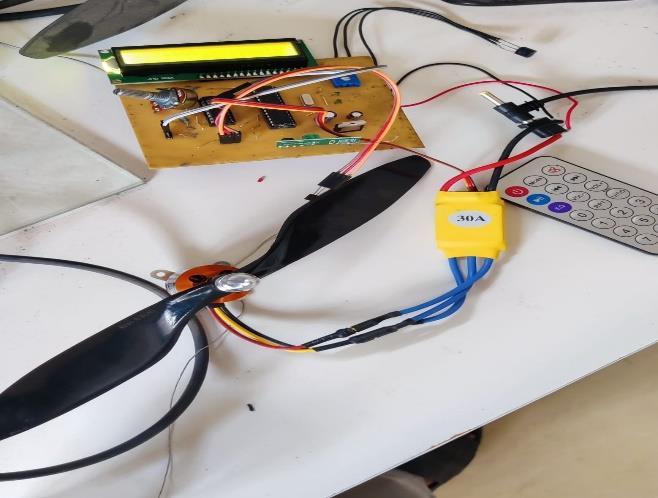 Motoring part includes BLDC motor (1400KV). The speed of the motor is controlled by an ESC (Electronic Speed Controller).Thespeedofthemotorvariesaccordingtothevariationinthepulsewidthofthemicrocontroller.