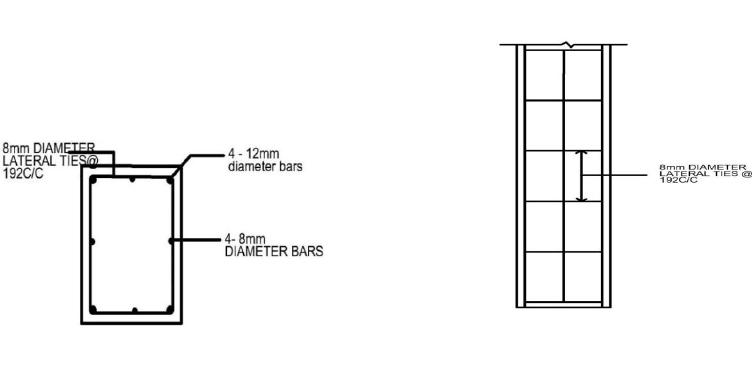 1000mmwerecastalongwithconsiderationof1%ofsteel in design. Among all the four specimens, one is of control specimen(CS)andtheotherthreeareretrofittedspecimens (RS). 4 â12mm Ă and 4 â8mm Ă longitudinal rebar and stirrups of 8mm diameter lateral ties @ 192mm c/c was used in the control specimen. The other three specimens wereprovidedwithlesslongitudinalreinforcementdetails suchas12mm,10mm,and8mmrebarswereshownbelow inFigure1andFigure2.