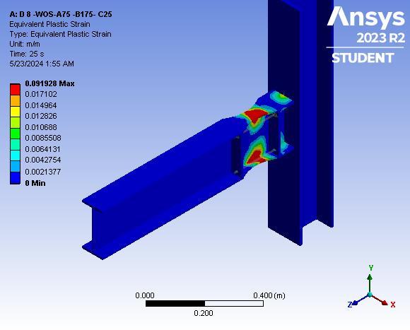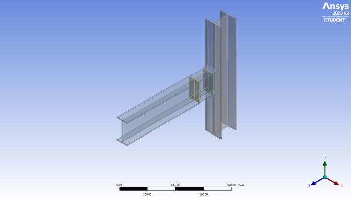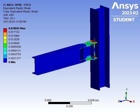TheRBSregionisstrengthenedwiththehelpof4boltsand a plate across the plastic hinge region. Bolts provide additional shear and tensileresistance, helping to transfer load and improve the overall rigidity of the connection. Platesareaddedtoreinforcethereducedsectionproviding additionalcross–sectionalareaandstiffness