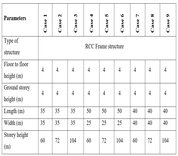 Heresixdifferentcasesoftallbuildingshavebeentaken. The variation of building is due to size and height of building.