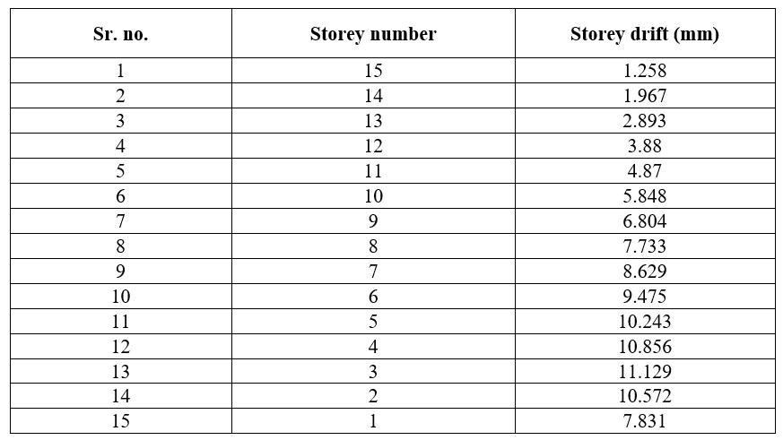 Table -15:Storeydriftforcase4