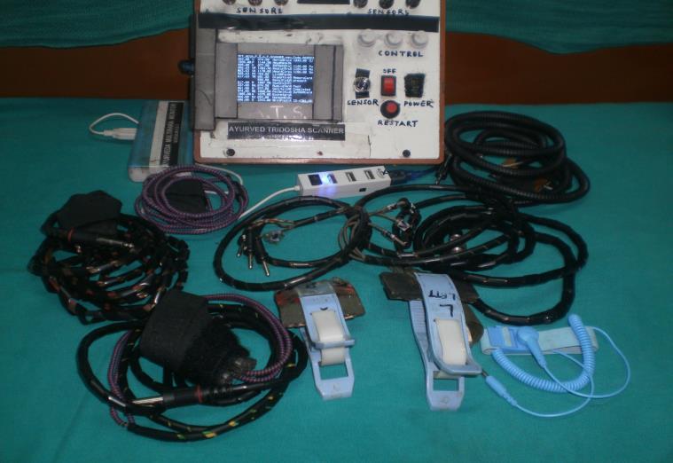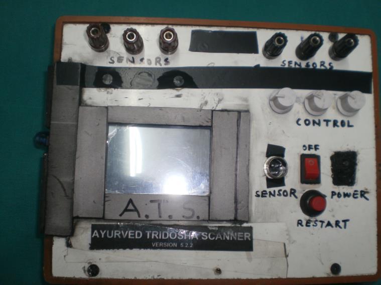 In the construction of Ayurveda Tridosha Scanner, different types of environmental conditions, many untouched, unknown dimensions, unseen , unanticipated things that come in between the medical practice of Ayurveda therapy, patient examinationanddiagnosisetc.Problemsandhurdleskeepinginmindof thepracticaldifficultiesinpractice,itwasdecidedto makethismachinefoolproof.Effortsformakingthismachine werestartedfrom2009.Thismachinewasmanufacturedunder theleadershipandsupervisionofProfessorDr.PhoolSinghChauhanofIndianInstituteofTechnology,Kanpur,India.Trialsof the machine were started in 2010. Changes were made in its hardware and software from time to time as per requirement. This technology is not yet patented, so an attempt has been made to provide limited information about it. The equipment mentionedbelowhasbeenusedinthemanufacturingofthemachine.