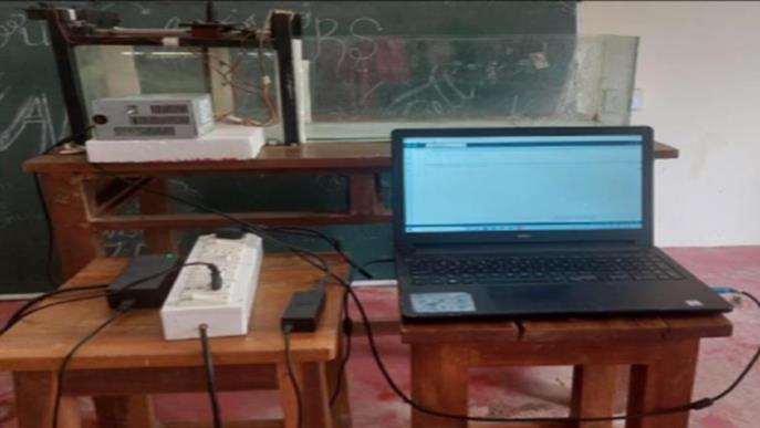 An experimental setup was prepared to analyse wave action's impact on soils. The setup included a wave tank made of glass walls; a wave generator programmed using Arduino UNO, a laptop and a power supply. Experimental setupisshowninFig.1