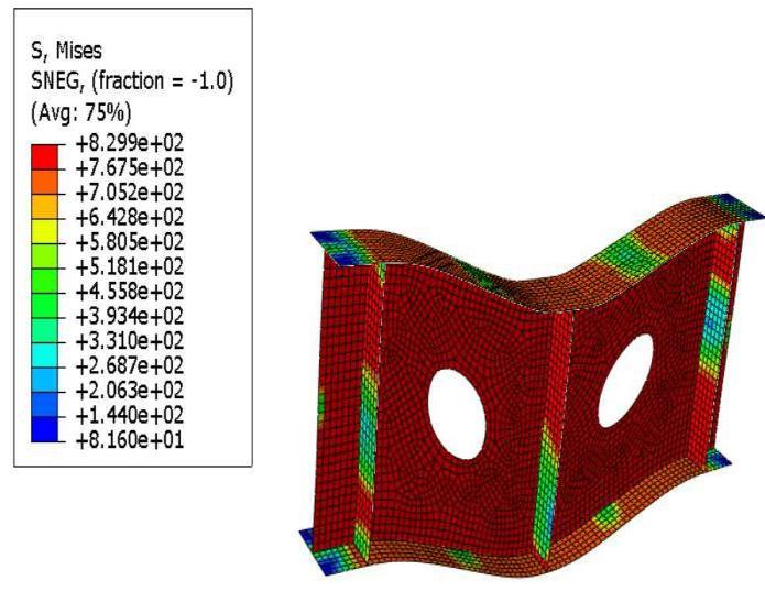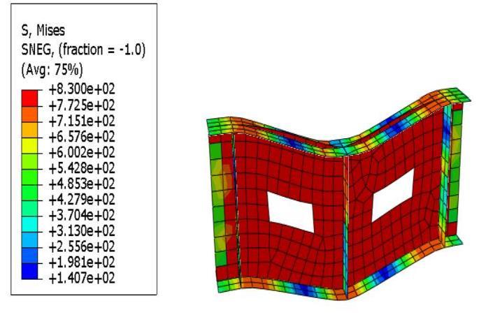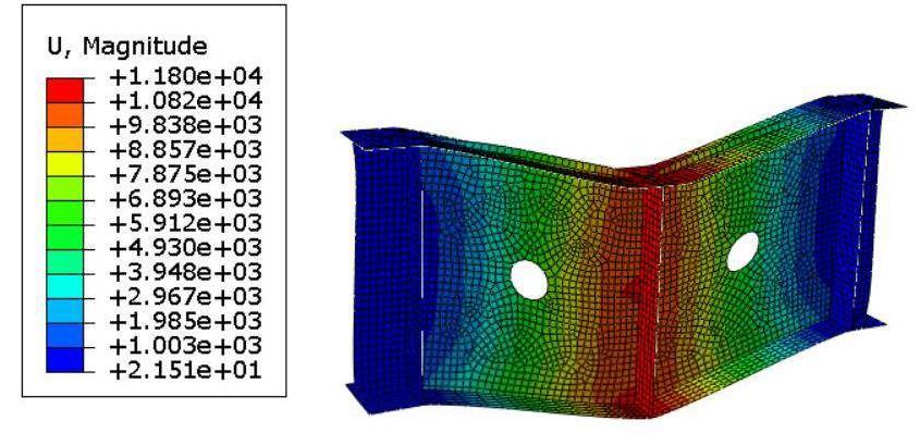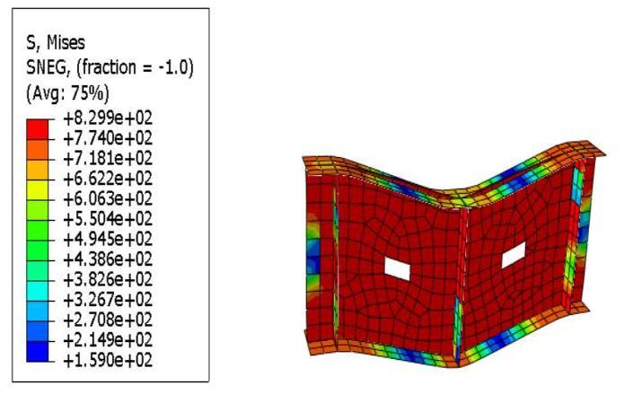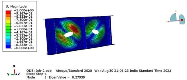 The model 4 is a hybrid plate girder with square web openingoflargerarea.Loadisappliedatthemidpointasa displacementloadof5mmandboundaryconditionisalso applied.