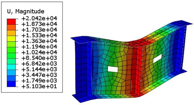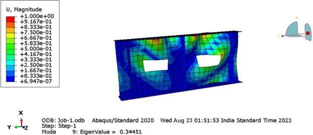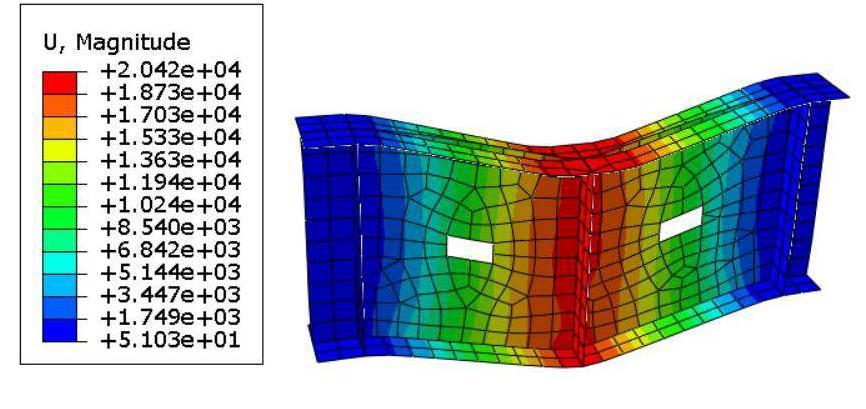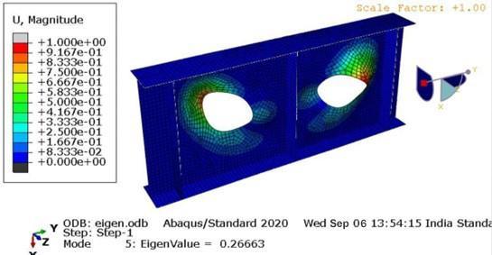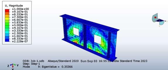 The model 3 is a hybrid plate girder with square web openingofsmallerarea.Loadisappliedatthemidpointasa displacementloadof5mmandboundaryconditionisalso applied.