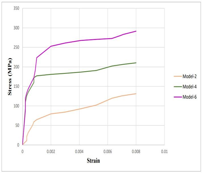 Similarly, the stress strain graph of model-2, model-4, model-6 were compared as in Chart-17, since the area of openingwassameforthefollowingmodels.