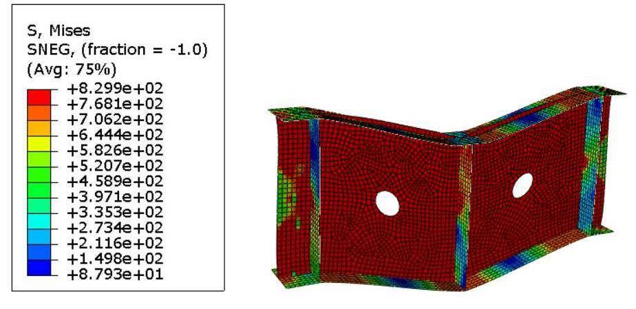 2) It appears that Hybrid plate girder with circular web opening experience lower stress compared to other modelsandhavemorefavorablestressdistribution.(As theareaofthewebopeningincreases,thestressonthe girderincreases)