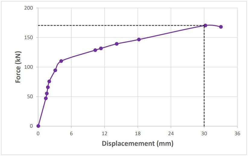 Fromtheabovechartithasbeennotedthatthemaximum loadobtainedis170.3625kN ata displacementof30mm respectively.
