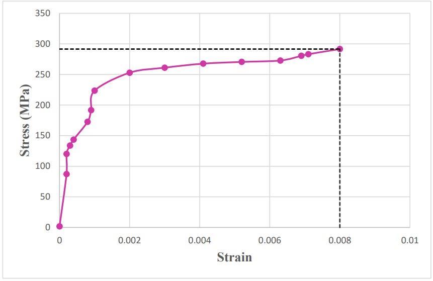 Themaximumvalueofstressisapproximately291.5235MPa atastrainof0.008.