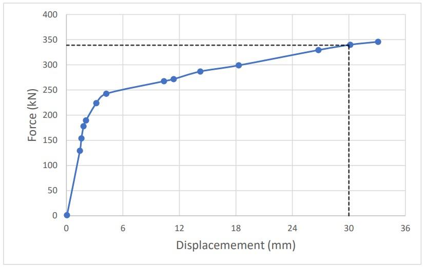 Fromtheabovechartithasbeennotedthatthemaximum loadobtainedis339.9326kN ata displacementof30mm respectively.