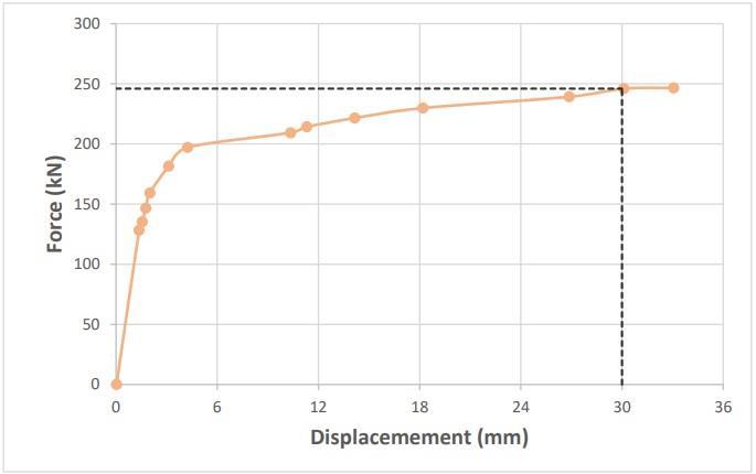Fromtheabovechartithasbeennotedthatthemaximum loadobtainedis246.0370kN ata displacementof30mm respectively.