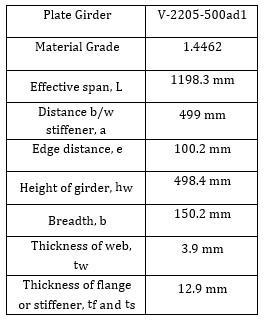 Inthisanalysis,wefocus on modellingand studyingplate girders that incorporate web openings in various shapes, namelycircular,squareandrectangular.Theseplategirders exhibitahybridconstruction,featuringawebportionmade ofDuplexStainlessSteelandflangeportionconstructedfrom LeanDuplexStainlessSteel.Thestructuralanalysisinvolves applying a midpoint load as a displacement of 5 mm, and appropriateboundaryconditionsarealsoapplied.Material propertyofthewebandflangeisgiveninTable3