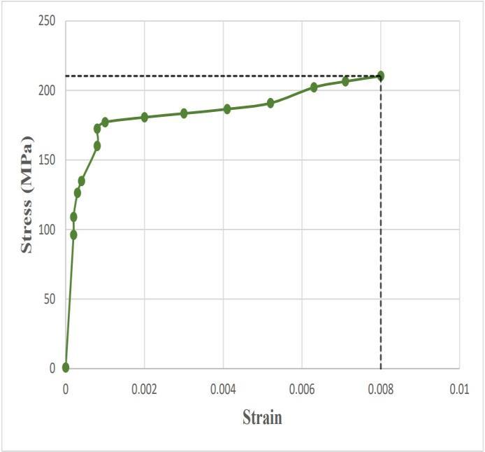 Themaximumvalueofstressisapproximately210.3992MPa atastrainof0.008.