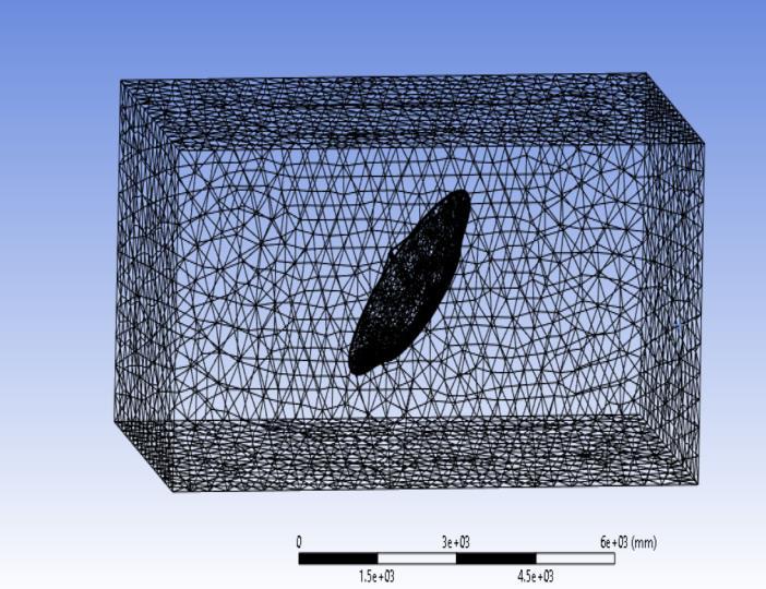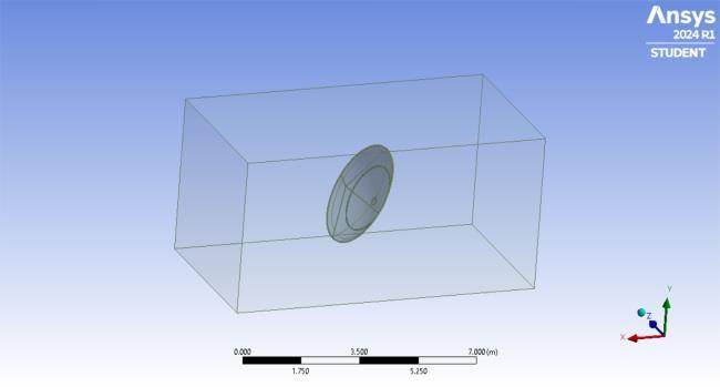 Inthewindanalysisproject,theinitialstepinvolvedcrafting a detailed model of the antenna dish using SolidWorks software.Oncethemodelwasmeticulouslydesigned,itwas saved as a .stp (STEP) file format, facilitating seamless integration into ANSYS Fluent for subsequent analysis. WithinANSYSFluent,theimporteddishmodelservedasthe focal point for the analysis, representing the physical geometryuponwhichvarioussimulationswereconducted. To replicate real-world conditions and ensure accurate results,anenclosure,akintoawindtunnel,wasmeticulously constructedaroundthedishmodelusingtechniquessuchas Boolean subtraction as shown in fig. 2. This enclosure providedthecomputationaldomainwithinwhichthewind flow interactions with the dish were examined. The enclosure, measuring 8 meters in length, served as the computationaldomainfortheanalysis,allowingforprecise examinationofwindflowinteractionswiththedish.