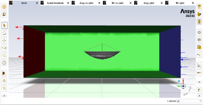 In the wind analysis conducted in ANSYS Fluent, several boundaryconditionswereselectedtoaccuratelysimulate the flow behavior around the dish. These boundary conditionsplayacriticalroleindefiningtheenvironmentin whichthesimulationoperates.