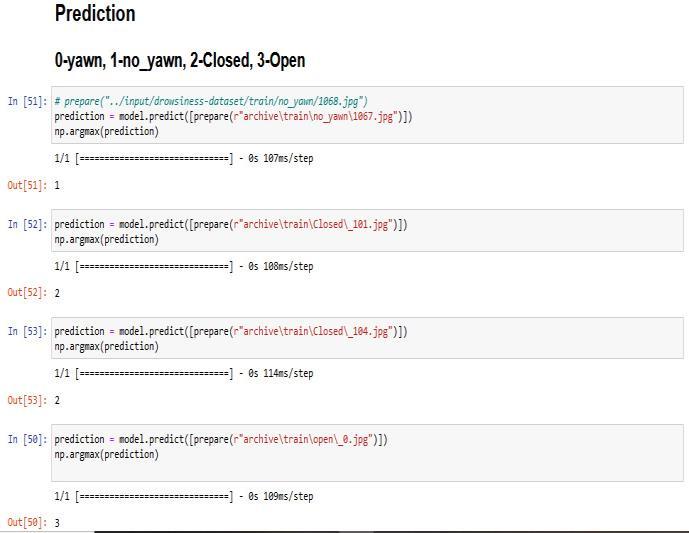 Machine Learning Model: – A machine learning algorithm, such as Support Vector Machines (SVM) or Convolutional Neural Networks (CNN), is trained on the extracted features.Themodellearnstodifferentiatebetweenawake and drowsy states based on the patterns in the feature space. After training the machine learning model, it is tested on both synthetic and real-world datasets that simulatevariousdrivingconditions.