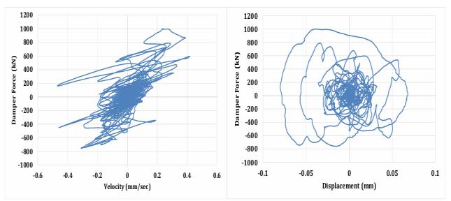 Figure 7(a): Hysteresis loop of Force v/s Displacement and Force v/s Velocity under Imperial Valley Earthquake for Model-3