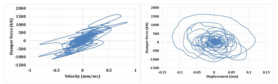 Figures 7(a) and 7(b) depict the hysteresis loop for the damperatstorey-25inModels3and4,respectively,under theconditionsoftheImperialValleyEarthquake.Itcanbe seen that energy is being lost from the damper force vs. displacementloop.Thedamper'scharacteristicsareshown inthedamperforcevs.velocityhysteresisloop.