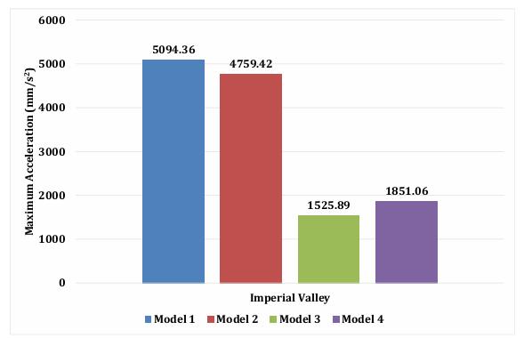 Figure. 15 Comparison of Maximum Acceleration due to Imperial Valley EQ Time History