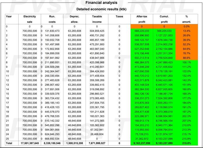 Various financial parameters of the project are shown in the Table 4. The payback period is very short at 7 years. This will make the project profitable and make it possible torepaytheinvestment.Meanwhile,theexpectedrevenue during the project period is approximately Tk 9,163,237,098.78.As this project is for schools, the rest of theelectricitycanbefedintothenationalgridtomeetthe school’s electrical needs. According to BPDP(Bangladesh Power Development Board), the price of electricity is 8.72tk per kilowatt for Off peak tariff and 12.10 tk per kilowatt for peak tariff. But according to our analysis at PVsyst software, the price per kilowatt is tk 5.751 which willhelpustomeettheelectricitydemandatalowcost. If weather conditions do not generate enough electricity for the project, The project uses the current from power grid that supplied intogrid previouslyandhas no requirement forbatteries,resultinginlowerinvestmentcostscompared to other power plants. Projects like this take us one step furthertowardssustainabledevelopment.
