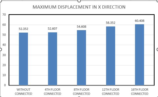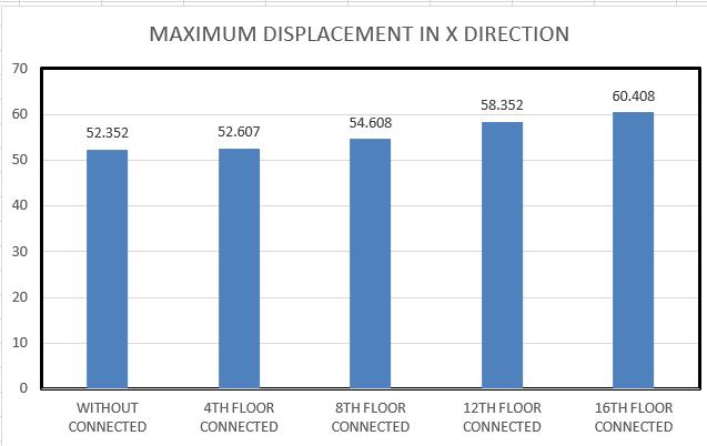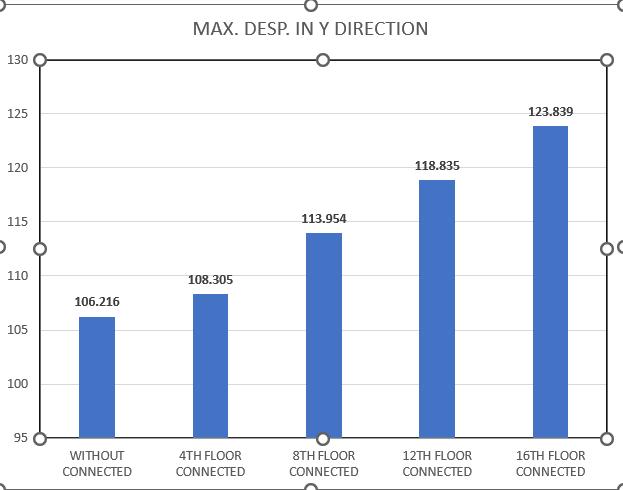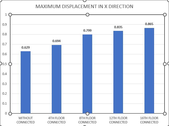 The maximum displacement increases slightly when connectionsareaddedatanyfloor,withincreasesofabout 1.20%to1.25%intheXdirectionandsignificantlymorein the Y direction, up to 425.49% at the 16th floor. This indicatesaconsiderableincreaseinlateralmovementwith higherconnections.
