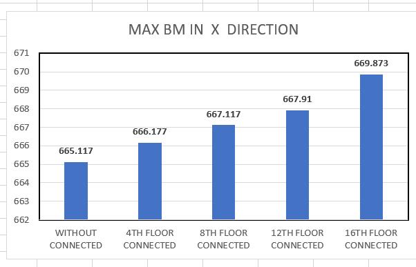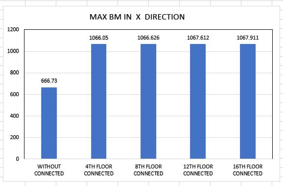Thereisanotableincreaseinbendingmoments,especially in the X direction, where values can exceed 213.29% on connectedfloors.Thissubstantialrisehighlightstheneedfor higher moment resistance due to the added stiffness and massprovidedbytheconnections.