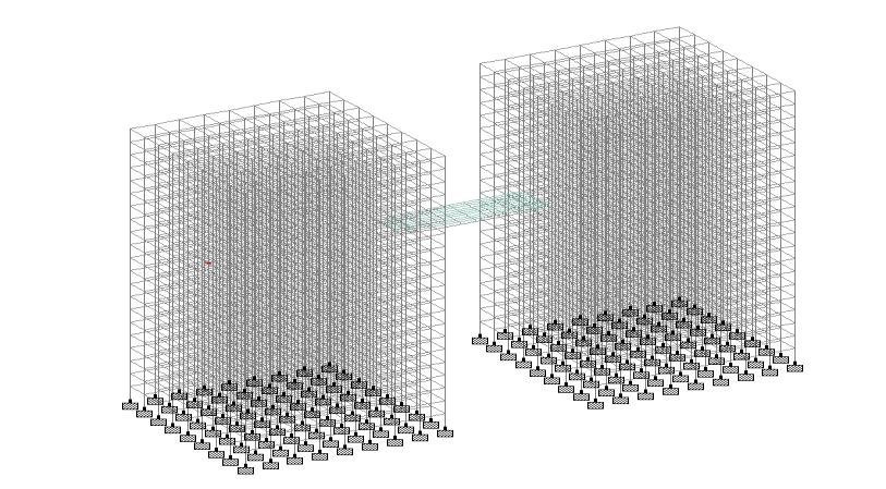 Key Words: Staad pro, horizontally connected building (sky bridge), max displacement, support reaction, max bending moment and maximum base shear