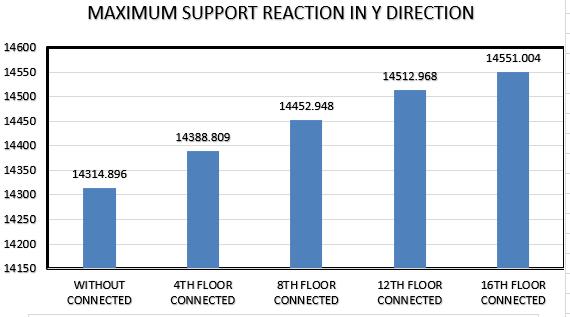 The increase in maximum support reactions is moderate across allconnectedfloors,rangingfrom1.15%to 176%. Thissuggestsaslightincreaseintheload-bearingdemand on the building's support structure due to additional horizontalconnections.