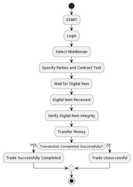 Abstract - This project introduces an innovative platform that transforms digital asset trading, particularly focusing on cryptocurrency transactions. Users access the platform through their cryptocurrency wallets, ensuring trust and security. A curated list of verified middlemen allows users to select trusted intermediaries based on reviews and activity. Trade requests are facilitated, optionally accompanied by blockchain-logged contracts, ensuringtransparentandindisputablerecords.[1]