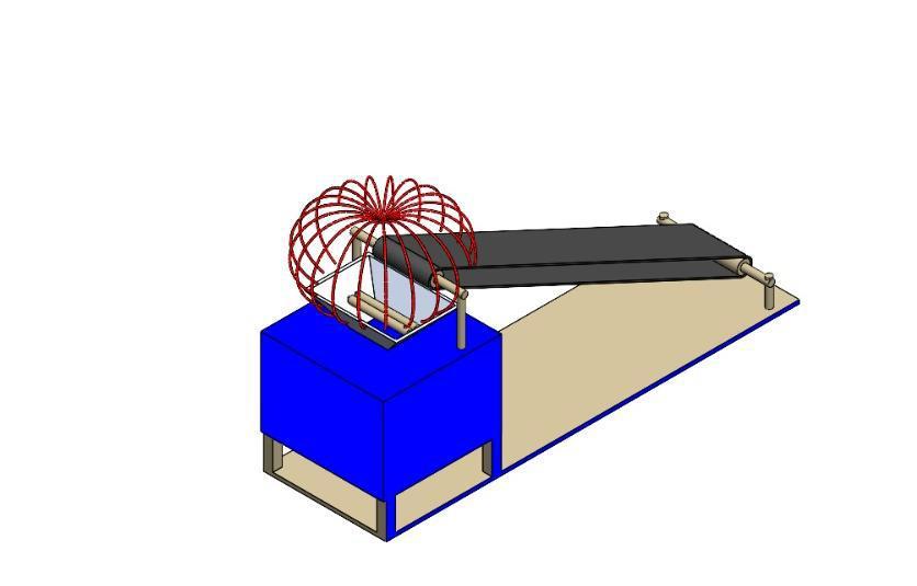 Figure 3 show the flying particle arresting mechanism designedtocollecttheflyingparticlesintheclosedchamber. When the conveyor releases the crushed tyre rubber and nylonparticlesinthehopper,thelightweightparticlesflyin the air. This designed mechanism does not allow the particlestomixwithair.Itpreventstheparticlesandfibers fromsurroundingatmosphereandhenceair.