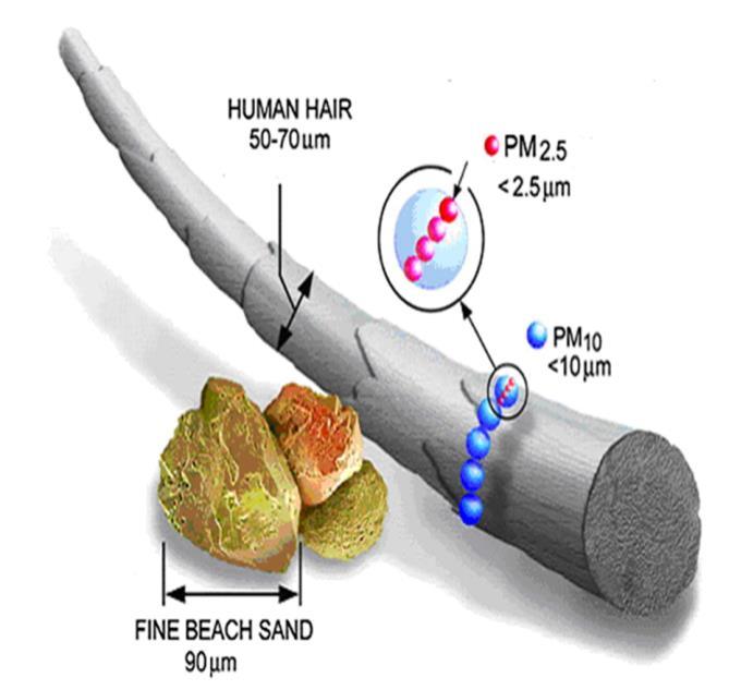 As per the World Health Organization (WHO) estimates, particulate matter (PM) air pollution is leading cause of mortality worldwide. Approximately 800,000 premature deathseachyearisreportedduetoPMairpollution.Many studiesreportedtheeffectandrelationshipbetweenPMair pollutionresponsibleforrespiratoryillness Morefocuswas giventostudyeffectofPMairpollutiononthecardiovascular system. It was revealed through the research that lung function,respiratorysymptomsandmortalityarethemajor areas of concerns due to PM air pollution [7] The size of particlesplaysmajorroleinthepotentialforcausinghealth problems.Therearetwokindofparticleswhichareinhalable coarseparticleshavingdiameterof2.5to10μmandsecond oneisfineparticleshavingdiametersmallerthan2.5μm[8]. The comparison of particle size shown in fig.1 was demonstratedbyGuaitaR[9]