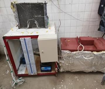 Thethermalperformanceofvehicleradiatorisinvestigated using the test apparatus as shown schematically and graphically in Fig. 1 and Fig. 2, respectively. Experimental setupisconsistingof0.5m3insulatedwatertankwhichis provided with 1.5 kW immersed electric water heater (regulated by thermostat) and agitator. 0.5 Hp water centrifugal pump for working fluid circulation. Vehicle radiator,finandtubeheatexchangertypeprovidedwithDC fansuppliedbybattery.Dimensionaldataandgeometrical characteristicsforvehicleradiatorareindicatedintable(1 and 2), respectively. In addition to piping network with required ball valves that connecting different parts of the system.Volumeflow ratesare measuredbyusingfloating flowmeterswithanaccuracyof±0.5LPM.AmercuryU-tube manometer is connected to the inlet and outlet of the radiatorforpressuredropmeasurements.Thetemperatures aremeasuredby35 type–Kcalibratedthermocouplesare placedindifferentpointinthesystem.Volumeflowratesare measuredbyusingfloatingflowmeterswithanaccuracyof ±0.5LPM. Thehot wireanemometerisused toobtain the average air velocity with an accuracy of ±0.1 m/s, which were0.6m/sandconstantduringallexperiments.