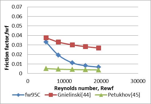Thefrictionfactorintheregionofturbulentflowisvalidated usingthemorewell-knownPetukhovcorrelationas[ 65-63 ]:
