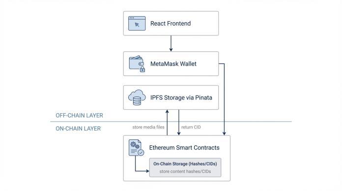 Large data such as images and videos cannot be stored directlyonblockchainduetocostandscalabilitylimitations. This phase introduces IPFS for decentralized storage and pinningservicessuchasPinata.OnlyIPFScontentidentifiers arestoredon-chain