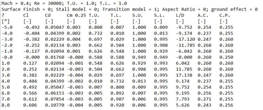 Fig -2:OutputFilefrom JavaFoil foranairfoilfor Re-30000andM-0.4